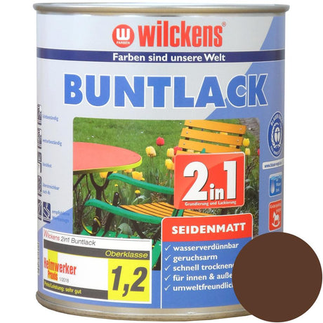 Wilckens Buntlack 2in1 seidenmatt, Nussbraun (RAL 8011), 750 ml