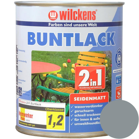 Wilckens Buntlack 2in1 seidenmatt, Silbergrau (RAL 7001), 750 ml