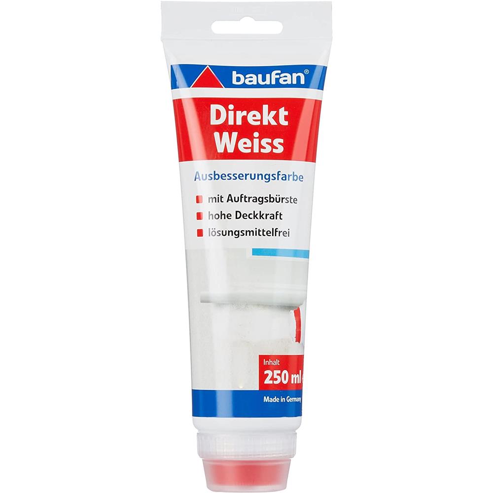 baufan Direkt-Weiss Ausbesserungsfarbe, 250 ml, mit Auftragsbürste - Biozidprodukt - vorsichtig verwenden!