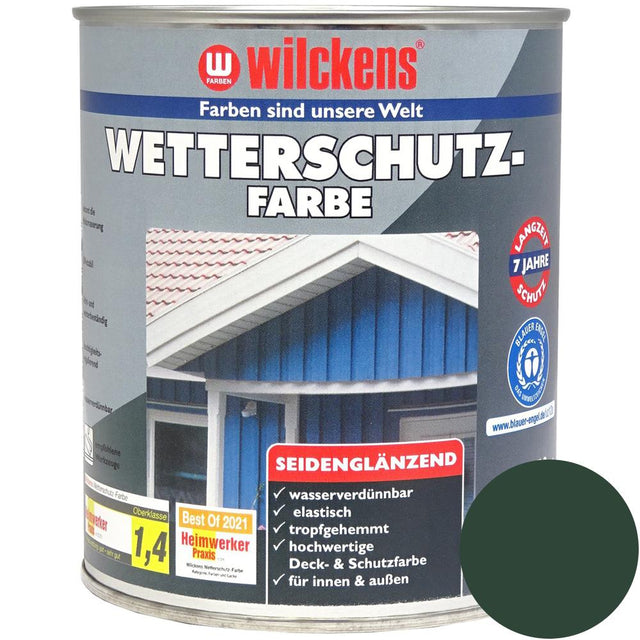 Wilckens Wetterschutzfarbe seidenglänzend, Moosgrün (RAL 6005), 750 ml