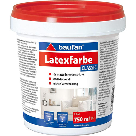 baufan Latexfarbe classic, weiß, 750 ml - Biozidprodukt - vorsichtig verwenden!