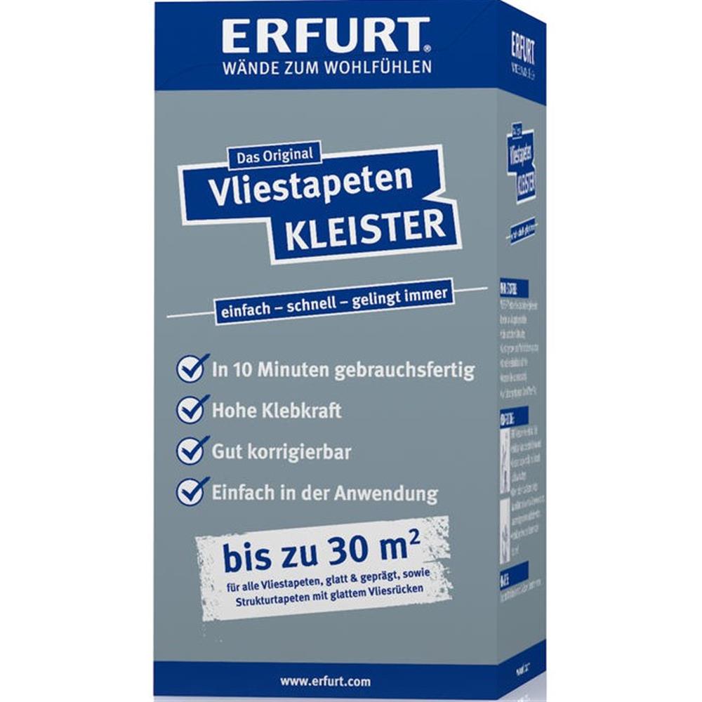 ERFURT-Vliestapeten Kleister ist ein Pulverkleister, der in Wasser aufgelöst wird. Er wurde speziell für das Tapezieren von Vliestapeten entwickelt und ist für die Verarbeitung aller Arten von Vliestapeten geeignet.