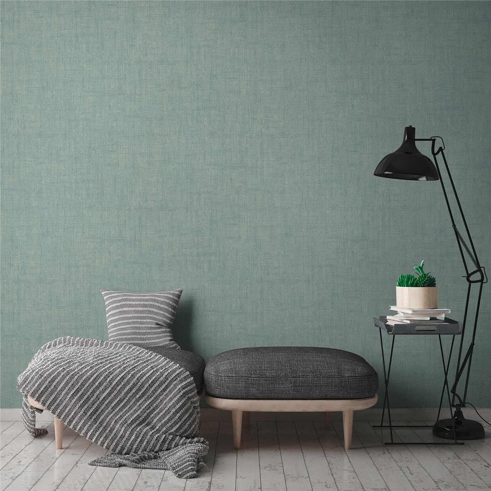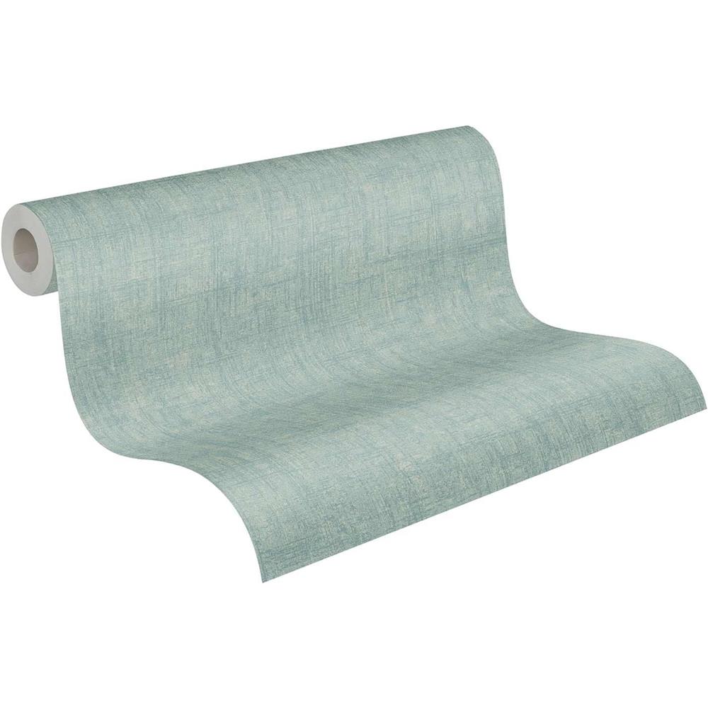 A.S. Création Vliestapete – Stoffoptik Hellblau, Uni Blau/Grün