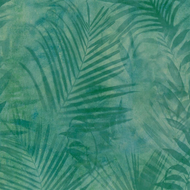 Tropisches Palmenblatt-Muster in Grün und Blau für eine frische und lebendige Wandgestaltung.