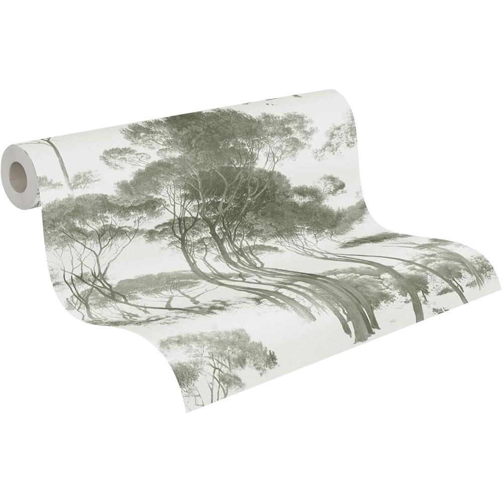 A.S. Création Vliestapete History of Art – Waldtapete Bäume Weiß Grün