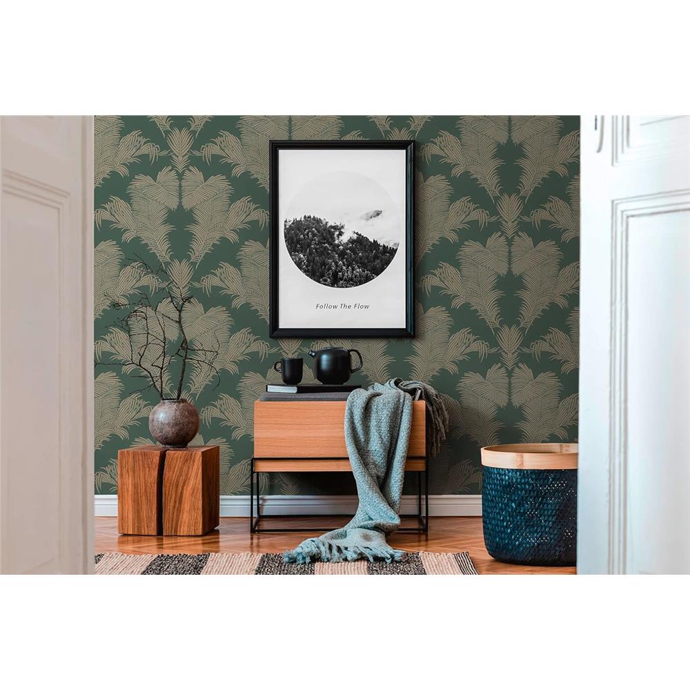 Die Vliestapete von A.S. Création begeistert mit einer stilvollen Palmenoptik in edlem Grün und Gold und verleiht Räumen eine natürliche Eleganz. Ob im Wohnzimmer, Schlafzimmer oder als markante Akzentwand – sie schafft eine harmonische und exklusive Atmosphäre. Der versetzte Rapport sorgt für eine lebendige Optik, die tropisches Flair mit modernem Design verbindet. Dank hochwertiger Verarbeitung lässt sich die Tapete mühelos anbringen und sorgt für ein perfektes Tapezierergebnis. Als deutsches Qualitätserzeugnis steht sie für Langlebigkeit und erstklassige Qualität. Mit diesem Design holen Sie sich stilvolle Naturakzente in Ihr Zuhause.