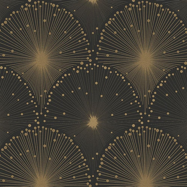 Moderne Akzente in edlem Metallic-Gold auf tiefschwarzem Hintergrund – diese Tapete verleiht jedem Raum einen stilvollen und zeitgemäßen Look.