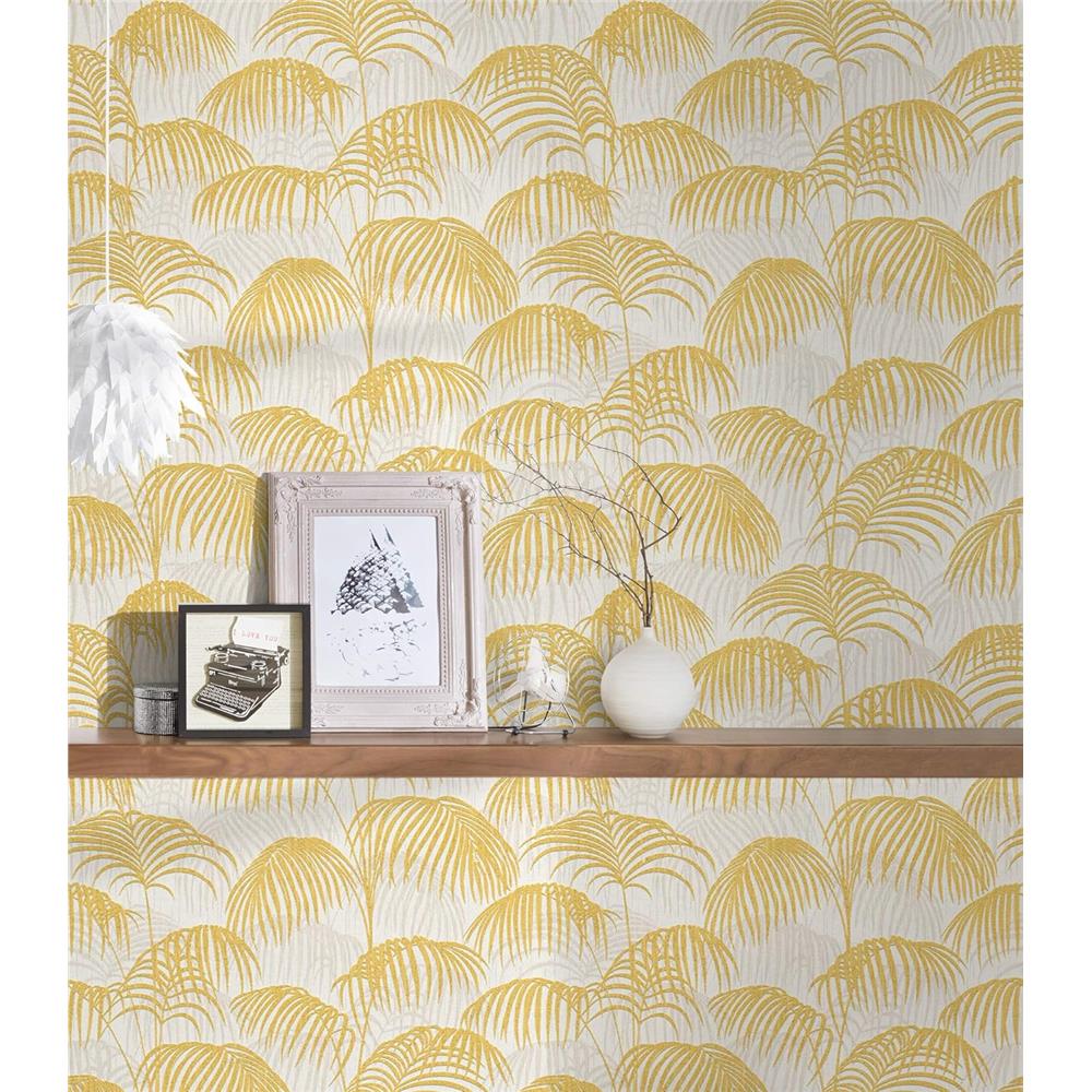 Architects Paper Tessuto 2 Textiltapete Palmenprint Tapete gelb metallic weiß