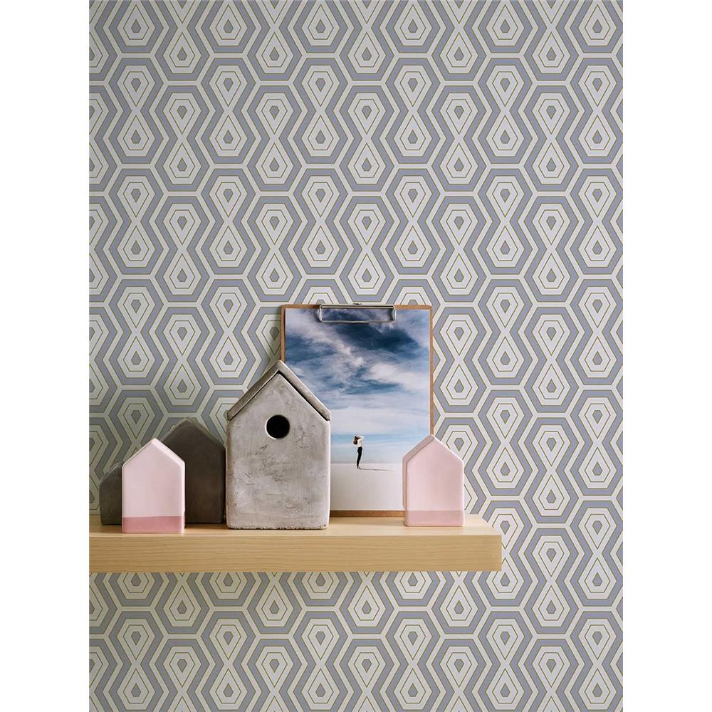 Die Retrotapete aus der Kollektion "Jungle Chic" kombiniert geometrisch-grafische Elemente mit einem modernen Farbmix in Gold, Grau und Weiß. Das matte, glatte Finish sorgt für eine elegante Optik – perfekt für kreative Wohnkonzepte mit einem Hauch von Fantasie und Natur.