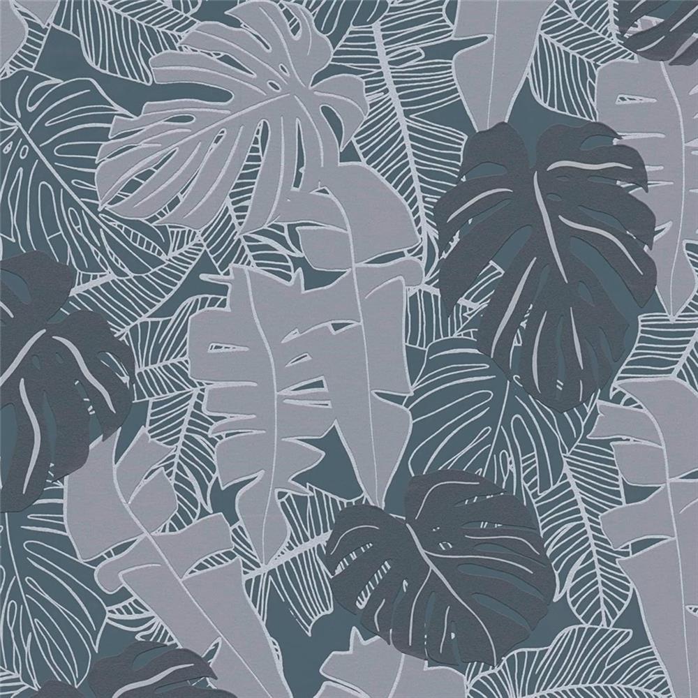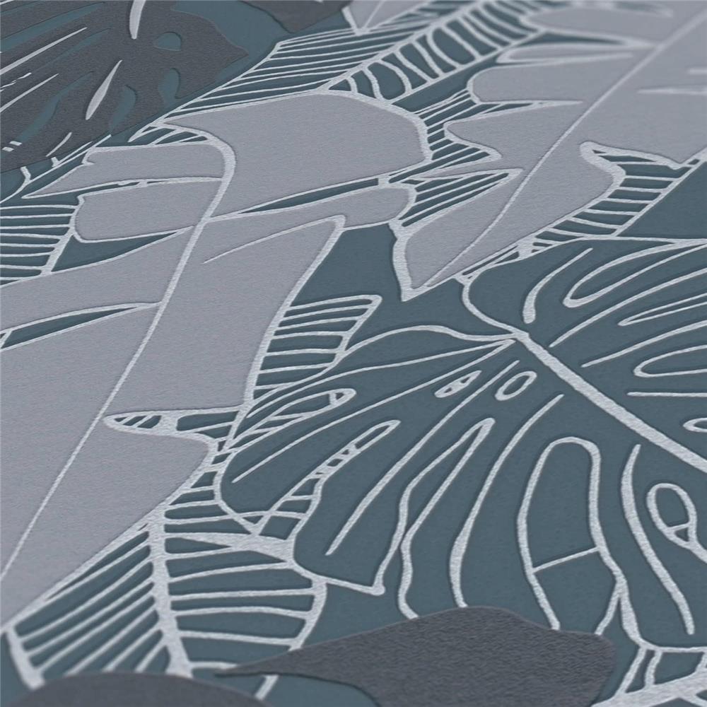 - Design: Palmentapete in Grau und Anthrazit mit schimmerndem Muster und mattem Hintergrund
