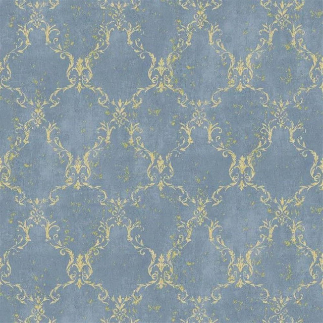 Die luxuriöse Vliestapete "Luxury Damask" beeindruckt mit einem klassischen Damastmuster in prachtvollem Gold auf tiefblauem Untergrund. Das Zusammenspiel aus edlen Farben und glänzender Satinstruktur verleiht Wohnräumen ein majestätisches Ambiente – ideal für stilvolle Akzentwände im Wohn- oder Schlafzimmer.